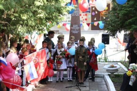 У памятника собрались односельчане, школьники, учителя, представители учреждений д.Леонтьево. Звучали песни военных лет, дети читали стихи.