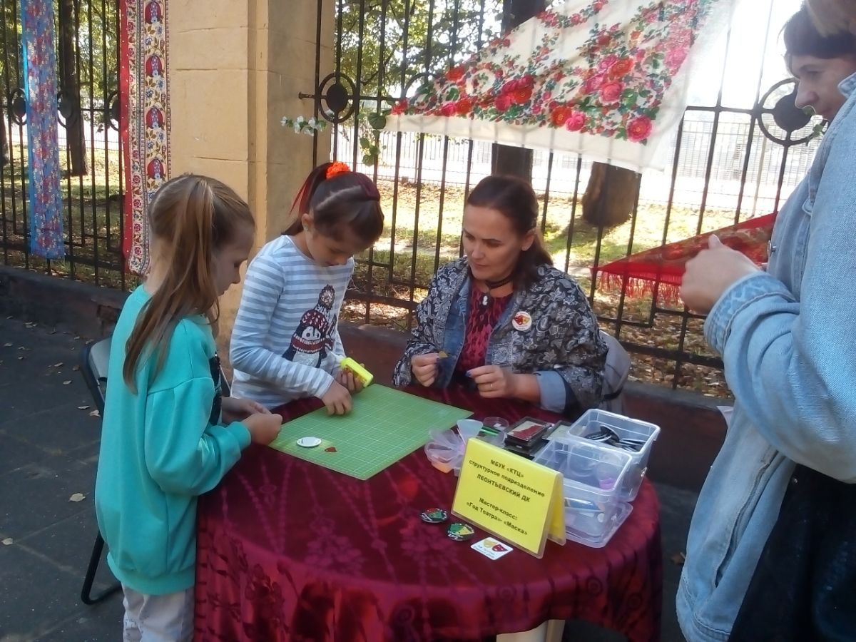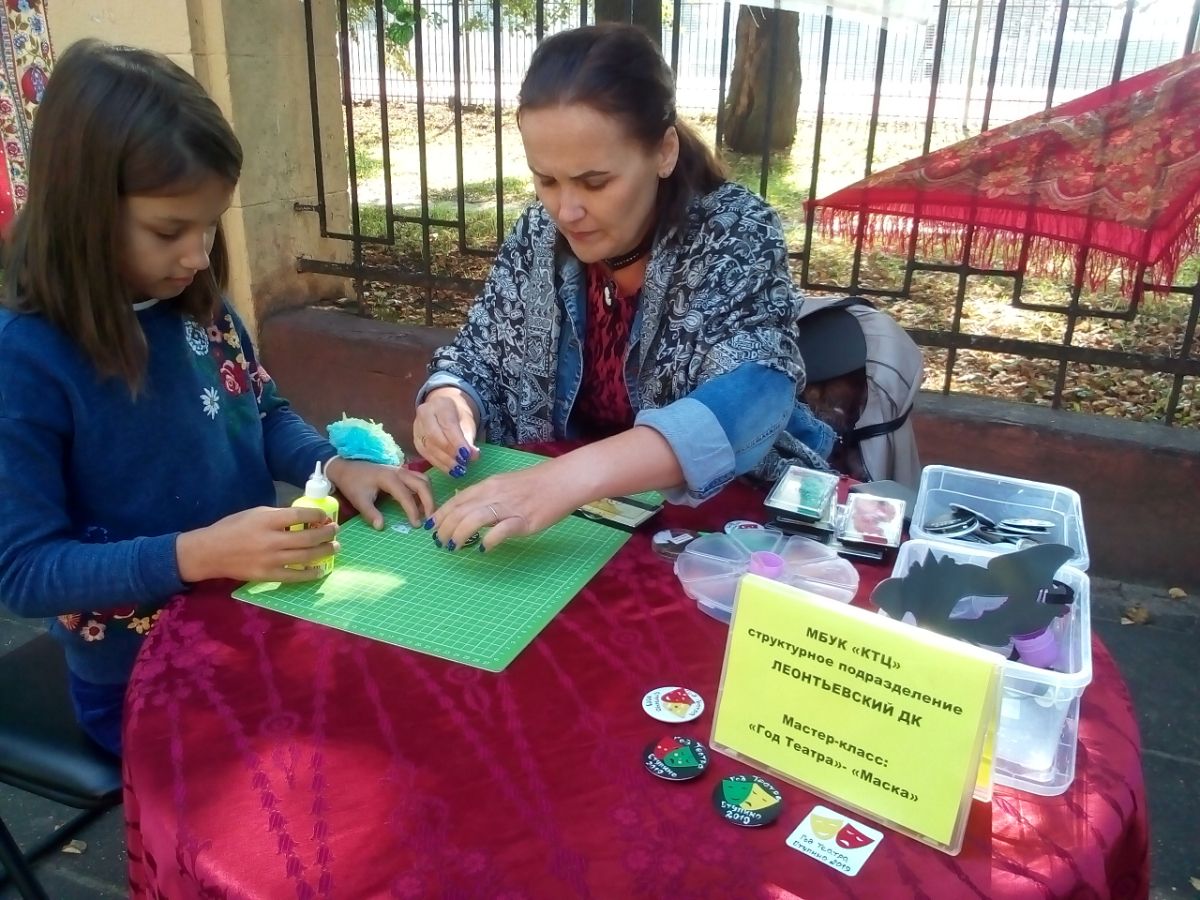 31 августа наш Дом культуры принял участие в празднике, посвящённом Дню рождения г.Ступино. Мастер-класс "Брошь "Маска"" в рамках Года театра проводит культорганизатор ДК, руководитель кружка прикладного творчества "Кудесница" С.А.Малькова.