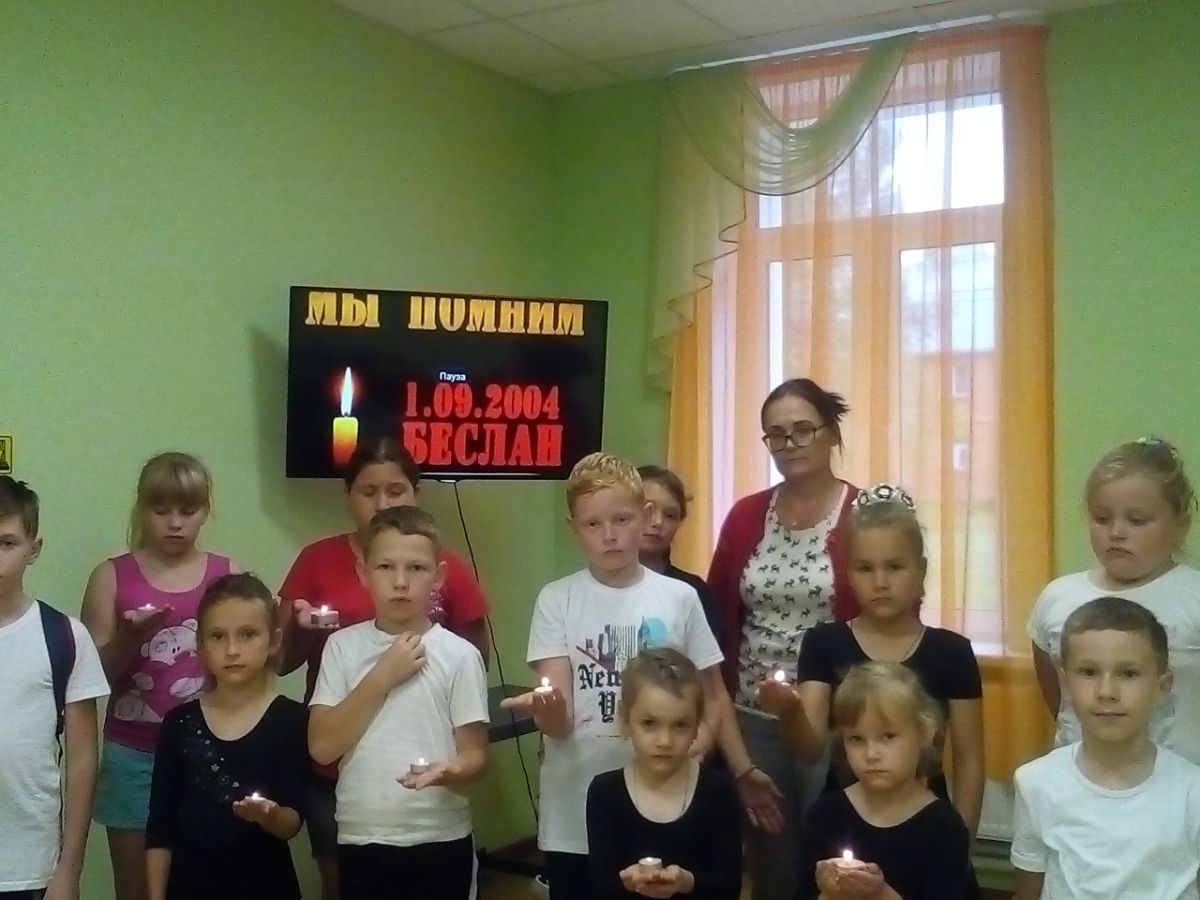 4 сентября состоялось мероприятие на котором дети узнали о страшной трагедии, произошедшей 15 лет назад в Беслане. В конце программы все участники зажгли свечи в память о погибших.