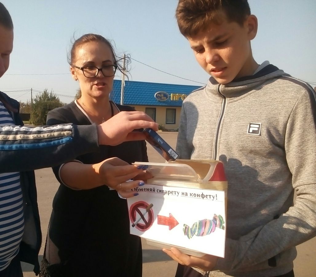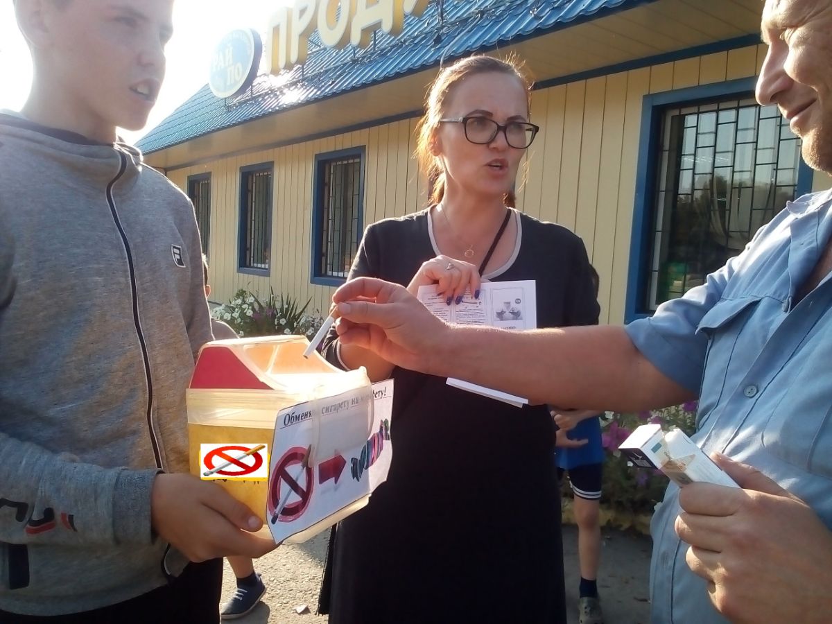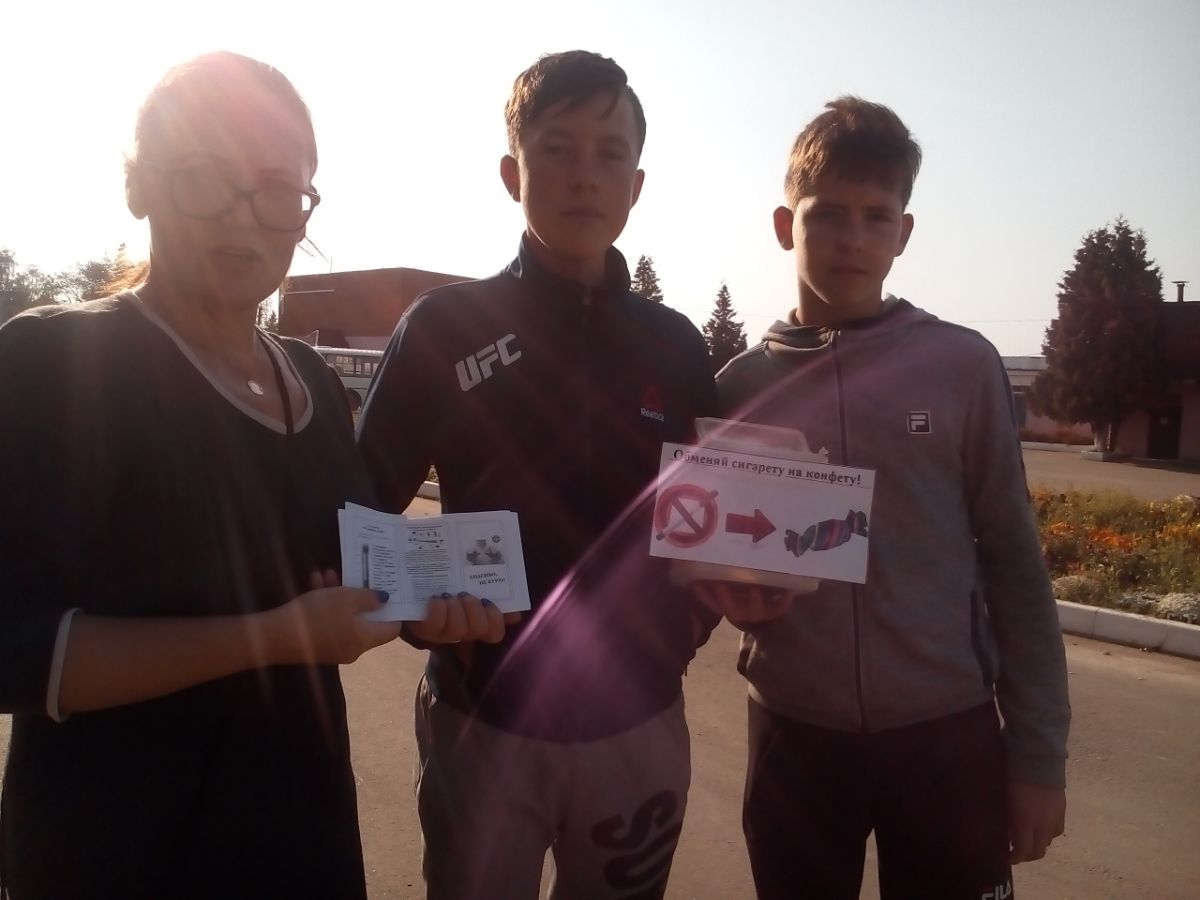 6 сентября сотрудники нашего ДК с группой волонтёров провели на территории д.Леонтьево добровольную волонтёрскую акцию "Сигарету на конфету!", посвящённую здоровому образу жизни. Волонтёры предлагали курильщикам обменять никотиновый яд на сладости и каждому участнику Акции раздавали памятки о вреде курения.