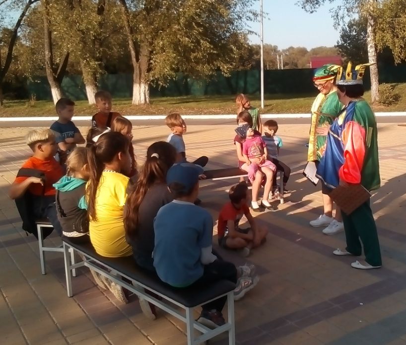 Игровая программа под названием «Театр-экспромт» состоялась 31 июля в нашем ДК. Театр- это всегда интересно и увлекательно. Поэтому дети с удовольствием приняли участие в этом мероприятии. Каждый выбрал себе образ сказочного героя, примерил маску. Перед детьми была поставлена задача -рассказать о своём персонаже: о его характере, в каких сказках его можно встретить. И ,конечно, самое интересное эти сказки сыграть. Все справились отлично!